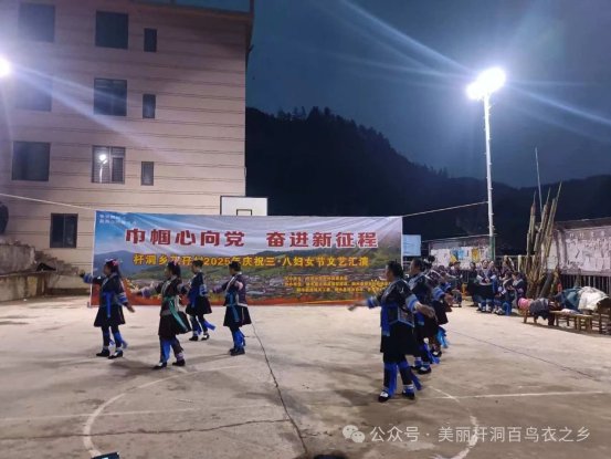 为丰富妇女同胞的文化生活,各村举办了精彩纷呈的文艺汇演。妇女代表身着节日盛装,表演了舞蹈、歌曲、小品等节目。文艺汇演中,花孖村的《巾帼心向党》苗歌联唱将党的政策融入传统曲调,高强村的小品《乡村振兴巾帼行》通过“电商主播助农”等生动场景,展现妇女在菌菇种植、苗绣工坊等特色产业中的主力军作用,让“她力量”绽放新时代光彩。