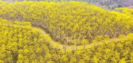 ●走进融水麻洞屯,大片油菜花肆意绽放,目之所及皆是灿烂金黄,风过时,花浪起伏,浓郁花香扑鼻而来。行至融水苗门,如梦似幻的紫荆花已悄然挂满枝头,粉紫的花瓣轻盈娇柔,微风拂过,花瓣簌簌飘落,仿佛下了一场浪漫花雨。而在融水兴贤村,风铃花也热闹地开了,一朵朵金黄的小花如铃铛般挂满枝桠,在暖阳下熠熠生辉,奏响春日的美好旋律 。![]()