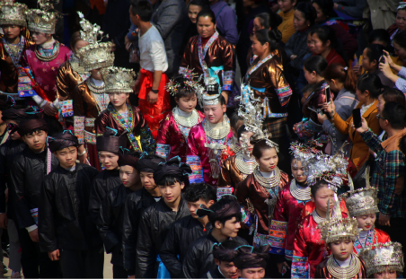 大年十九●前往融水县城,到梦呜苗寨景区,赶“苗族系列坡会群”的最后一坡——十九坡,感受芦笙齐鸣的热闹;穿上穿上精美的苗族服饰,带上华丽的银饰,打卡古色古香的吊脚木楼,深度体验苗家生活与文化。▲梦呜“十九”坡会