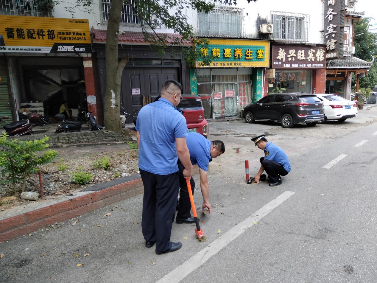 在私自加装地锁、防撞柱的地方,执法队员先对地锁和防撞柱进行勘察,找到易拆除的切口后使用切割刀、锤子等工具进行拆除。这样既能够完整的拆除地锁,又可以很好地对地面进行保护。拆除完毕后,执法人员将现场拆除的零配件及时清理,保持路面干净整洁。