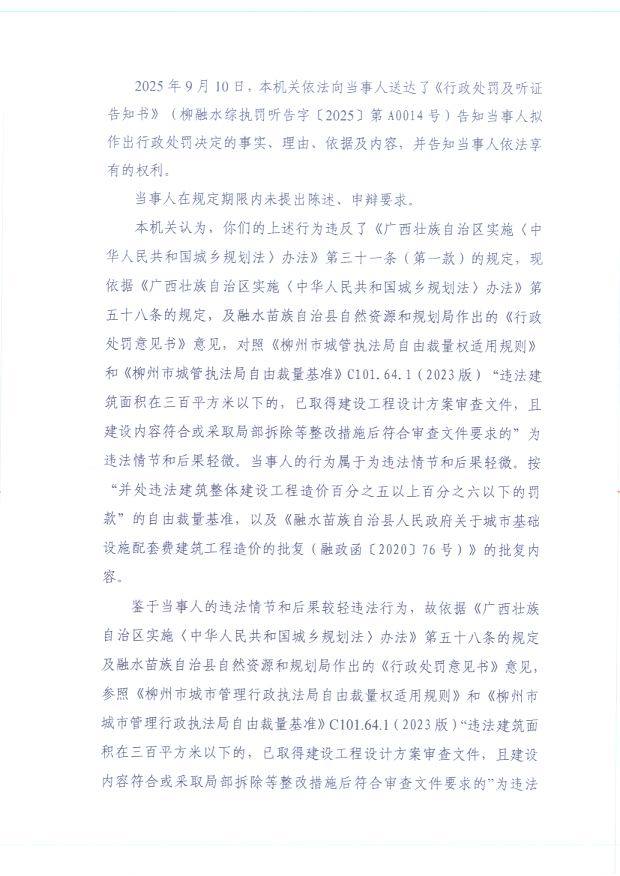 柳融水综执罚决字〔2025〕第A0014号