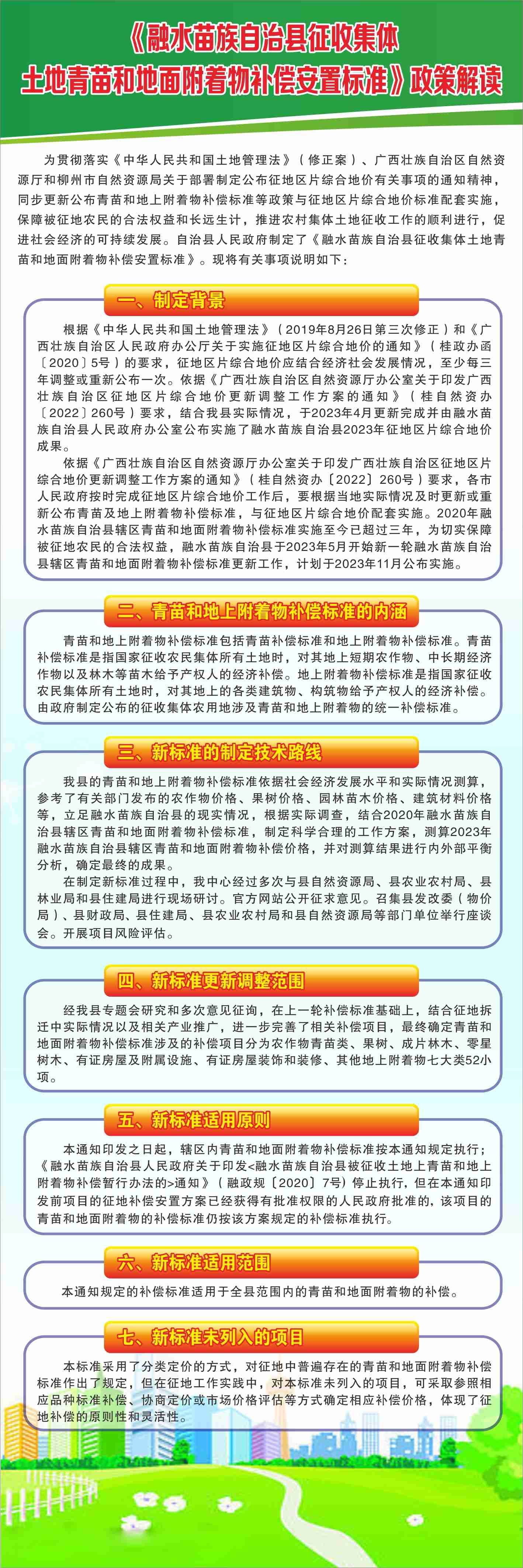 【图解】融政规〔2023〕4号《融水苗族自治县征收集体土地青苗和地面附着物补偿安置标准》政策解读