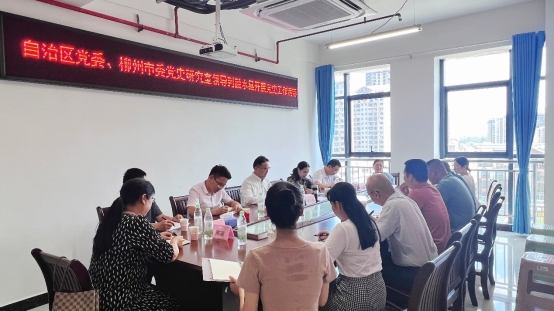 自治区党委、柳州市委党史研究室到融水县开展党史工作调研,正在座谈听取汇报