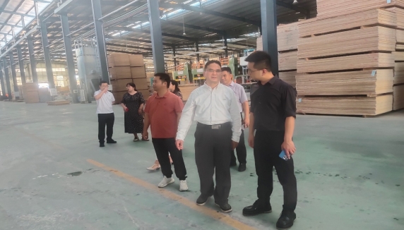 自治区党委党史研究室副主任黄志勇(右二)带队到广西融水瑞兴木业有限公司实地调研