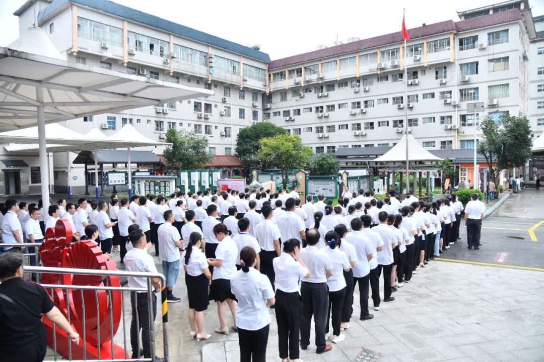 7 月 1 日,融水苗族自治县人民医院举行了一场庄严肃穆的升国旗仪式,以庆祝中国共产党成立103周年。此次升旗仪式是融水苗族自治县人民医院首次举行,旨在传承和弘扬伟大的建党精神,激励全体医护人员牢记初心使命,为人民健康事业贡献力量。
