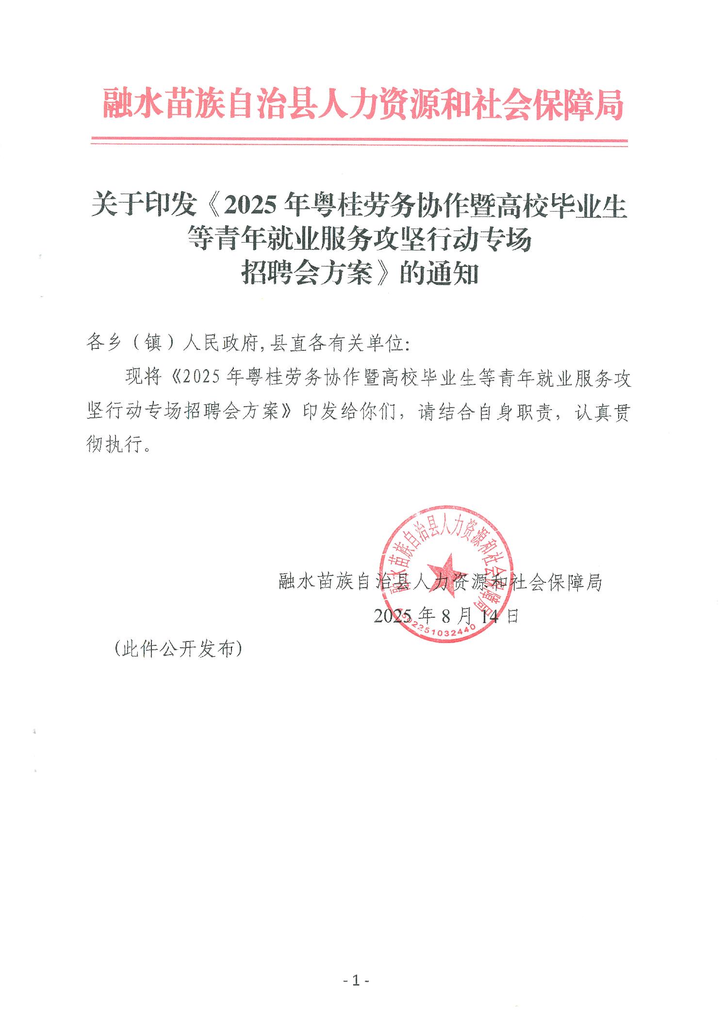 关于印发《2025年粤桂劳务协作暨高校毕业生等青年就业服务攻坚行动专场招聘会方案》的通知