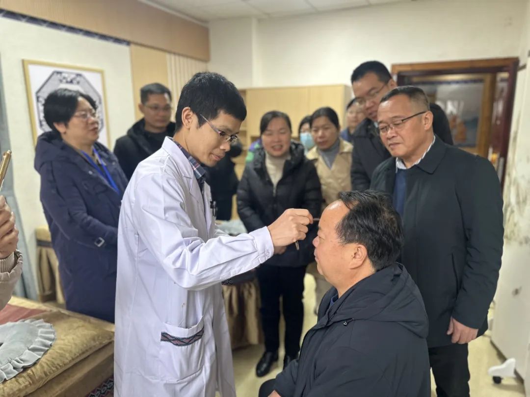 随后,医院民族医学科副主任覃佳成向他们展示其师傅全国基层名老中医何星自创的“何氏苗医平衡线灸”,调研组对“一根线”便能治疗疾病的苗医疗法表示赞赏,对医院特色诊疗技术、民族医药建设等中医特色文化表示高度肯定。
