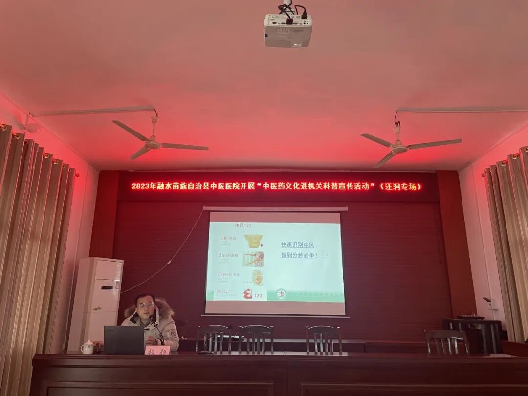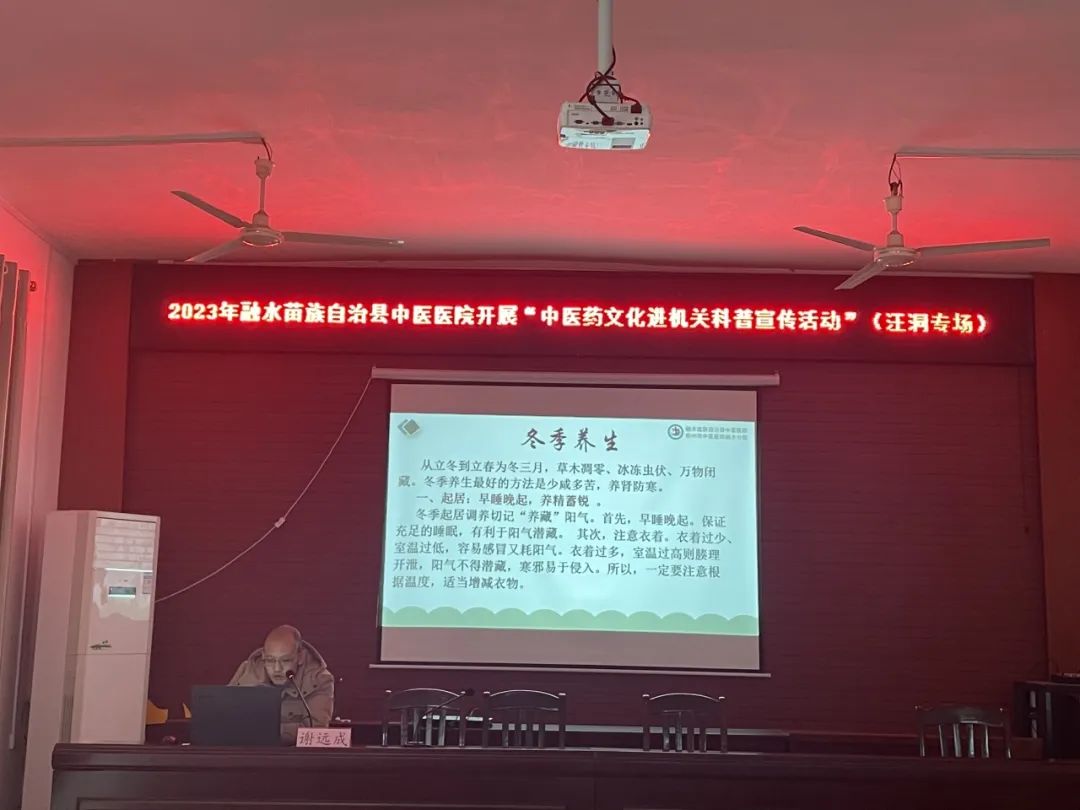活动中,融水县中医医院民族医学科医生谢远成为当地政府部门职工开展《冬季养生》主题讲座,他结合自己丰富的临床经验和专业知识向大家分享中医在冬季的保健方法和健康养生知识,同时分析了现代亚健康人群的主要症状及调理方法。