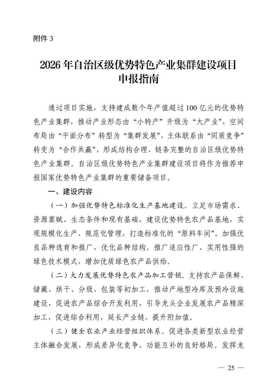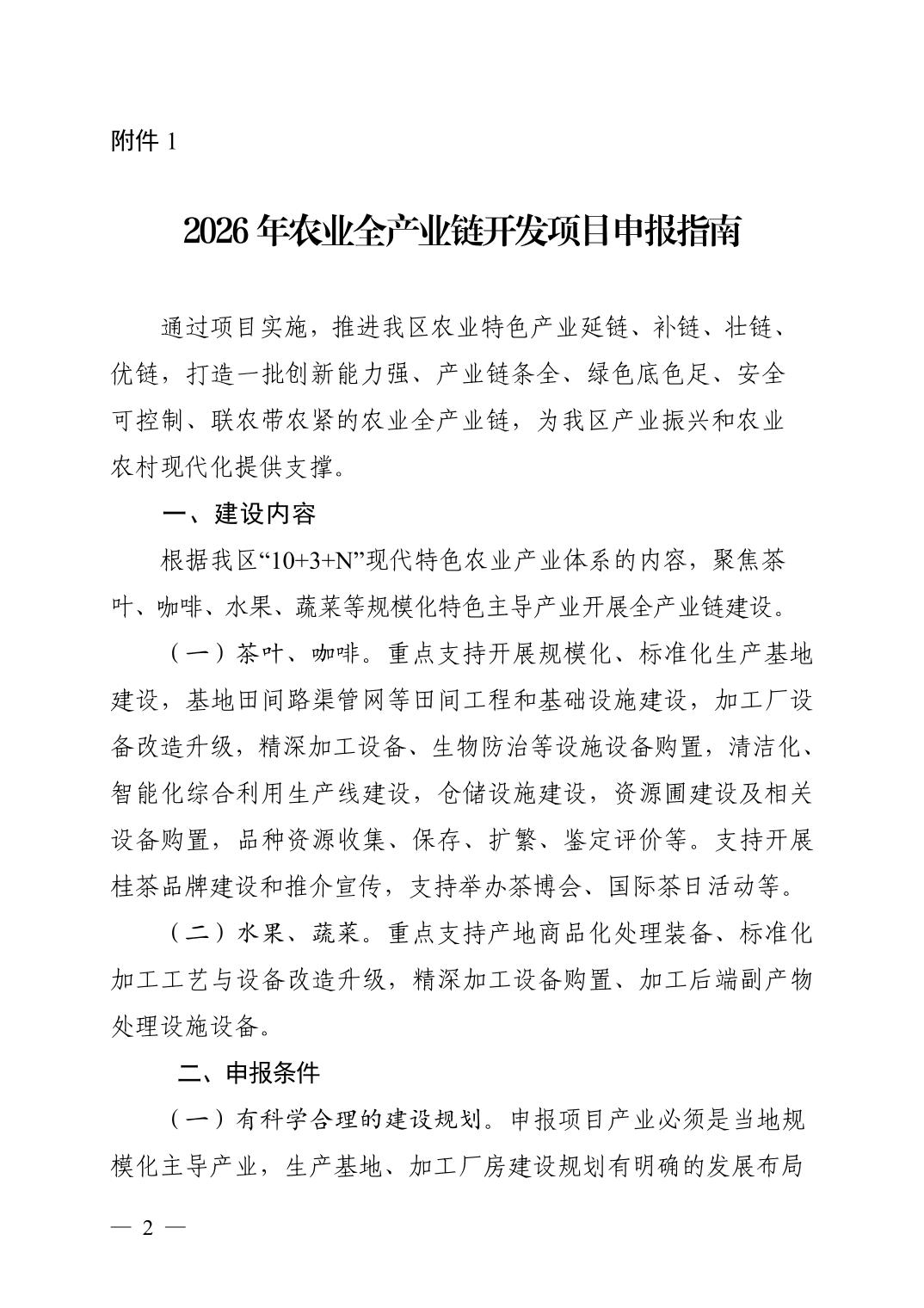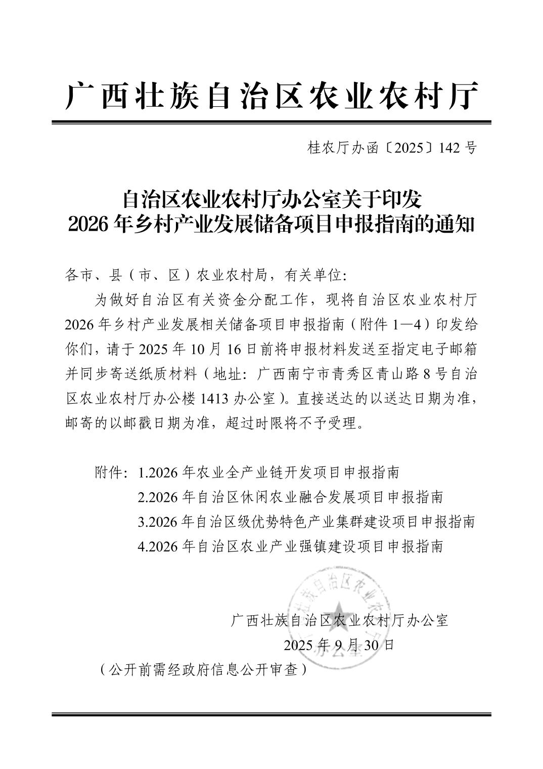 桂农厅办函〔2025〕142号 关于印发2026年乡村产业发展项目储备指南的通知