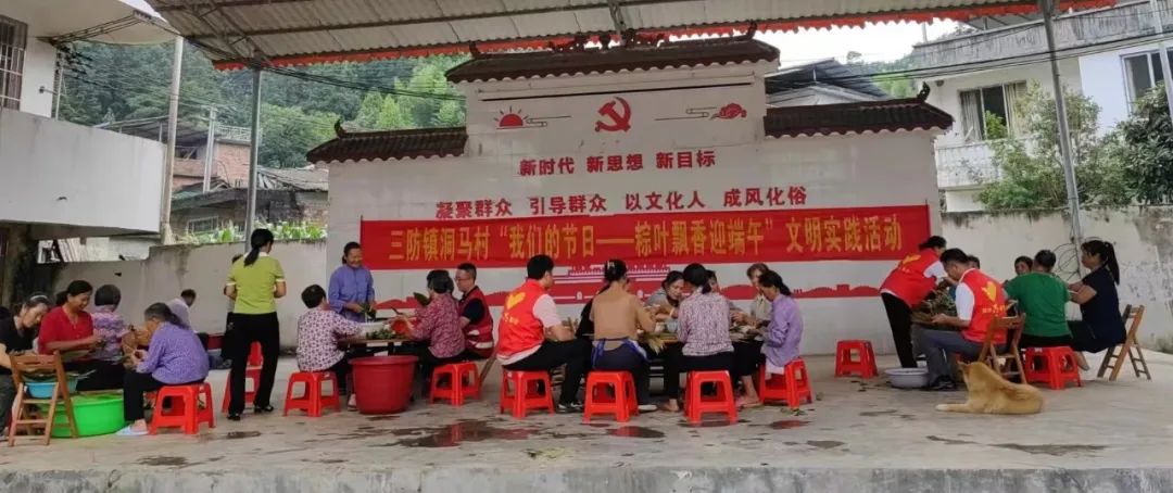 6月19日,融水苗族自治县三防镇洞马村组织开展“粽叶飘香迎端午”文明实践活动,村民齐聚在村新时代文明实践站一起包粽子,喜迎端午佳节。