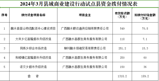 关于对融水县县域商业体系建设项目资金拨付的公示