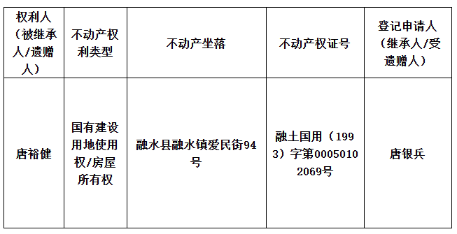 继承(受遗赠)不动产登记公告