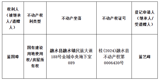 继承(受遗赠)不动产登记公告