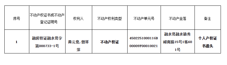 公告单位:融水苗族自治县不动产登记中心