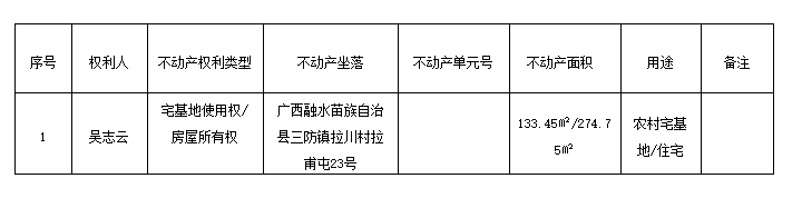 异议书面材料送达地址:柳州市融水苗族自治县民族大道203号振城大厦政务中心二楼不动产登记中心