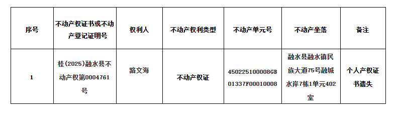 因我机构无法收回下列不动产权证书或不动产登记证明,根据《不动产登记暂行条例实施细则》第二十三条的规定,现公告作废。