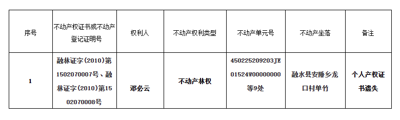 因我机构无法收回下列不动产权证书或不动产登记证明,根据《不动产登记暂行条例实施细则》第二十三条的规定,现公告作废。