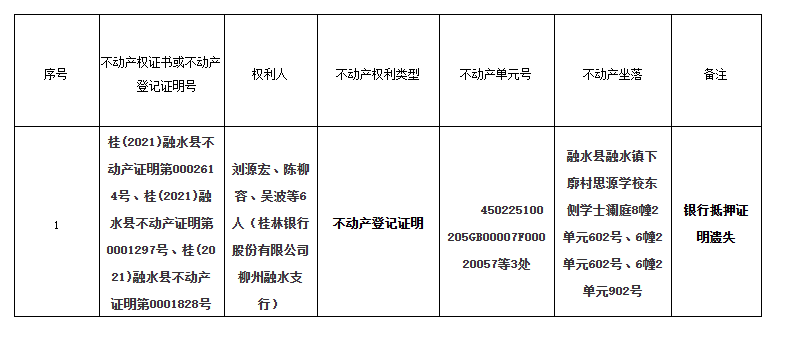 因我机构无法收回下列不动产权证书或不动产登记证明,根据《不动产登记暂行条例实施细则》第二十三条的规定,现公告作废。