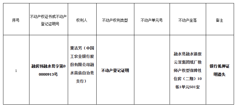 因我机构无法收回下列不动产权证书或不动产登记证明,根据《不动产登记暂行条例实施细则》第二十三条的规定,现公告作废。