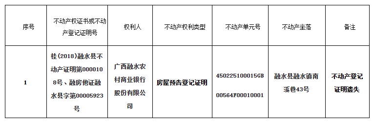 因我机构无法收回下列不动产权证书或不动产登记证明,根据《不动产登记暂行条例实施细则》第二十三条的规定,现公告作废。