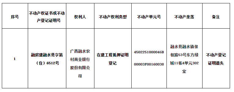 公告单位:融水苗族自治县不动产登记中心