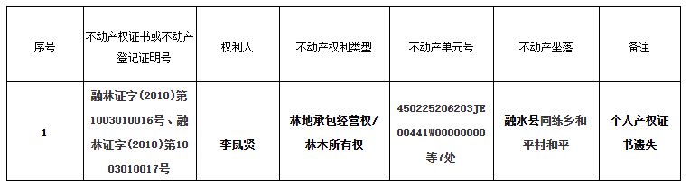 因我机构无法收回下列不动产权证书或不动产登记证明,根据《不动产登记暂行条例实施细则》第二十三条的规定,现公告作废。