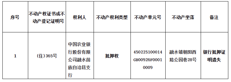 公告单位:融水苗族自治县不动产登记中心