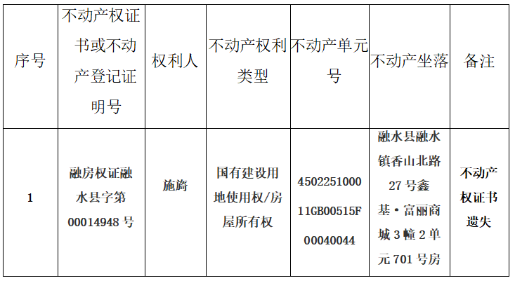 公告单位:融水苗族自治县不动产登记中心