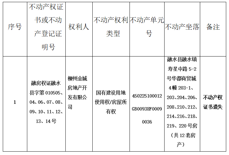 因我机构无法收回下列不动产权证书或不动产登记证明,根据《不动产登记暂行条例实施细则》第二十三条的规定,现公告作废。