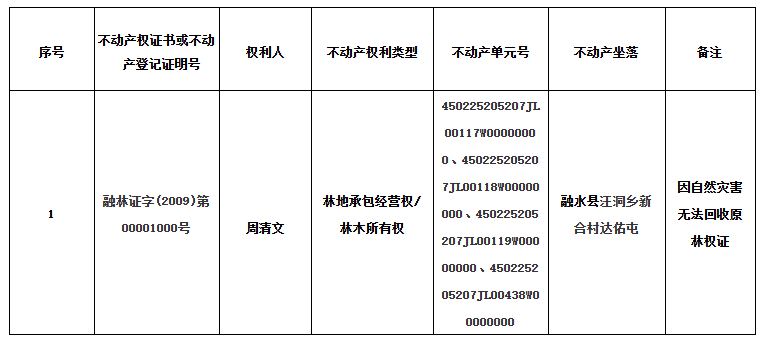 公告单位:融水苗族自治县不动产登记中心
