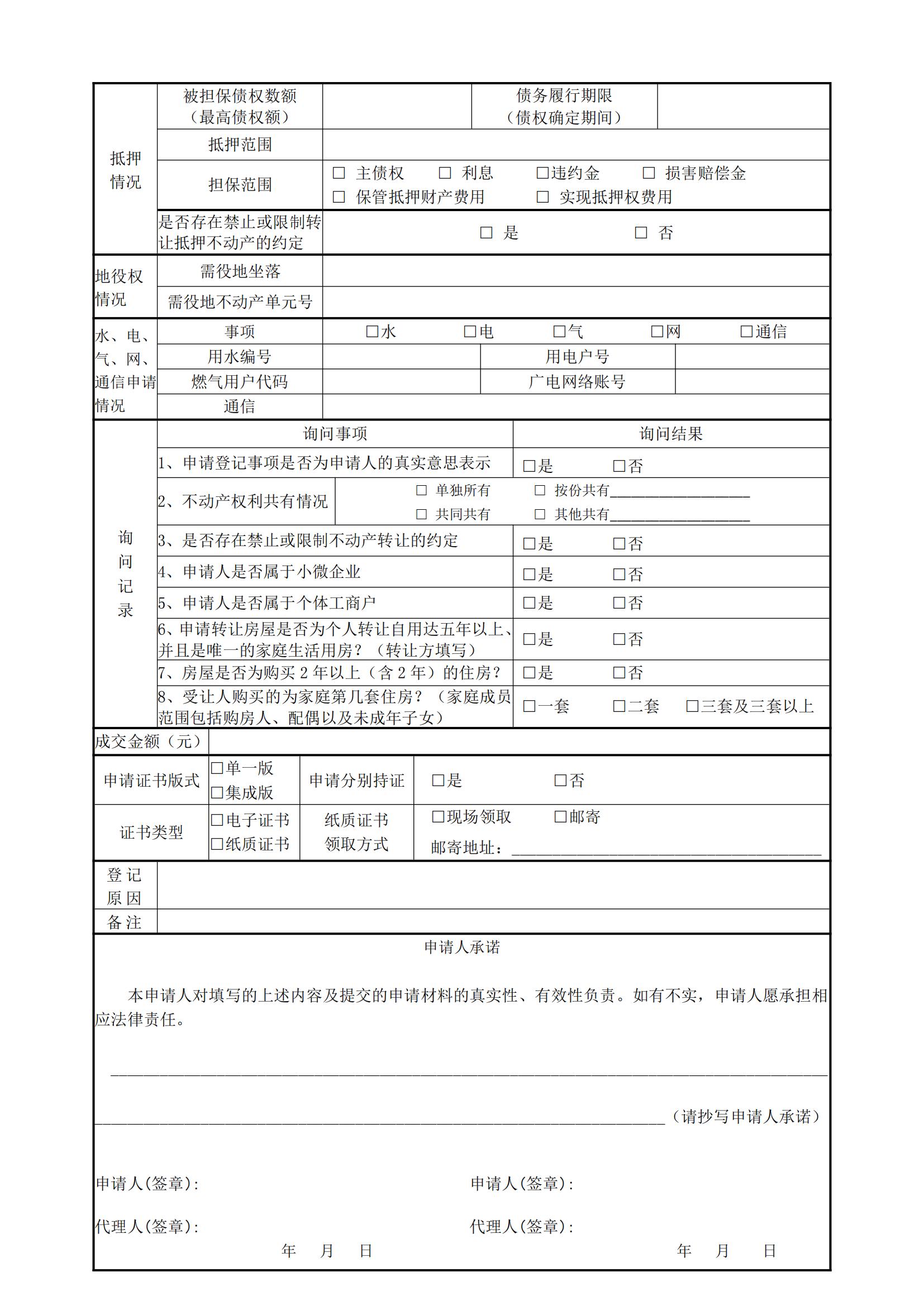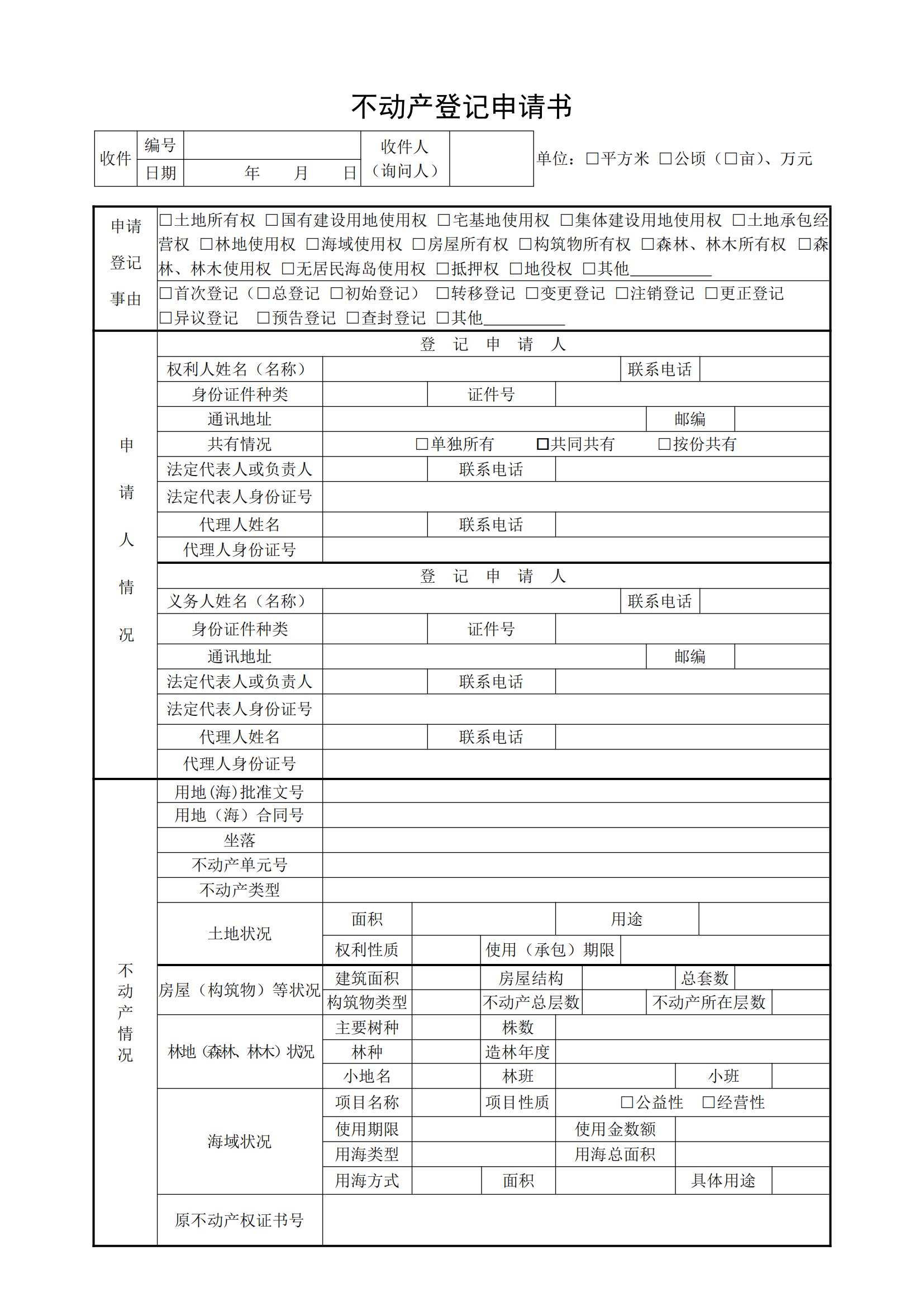 不动产登记申请书