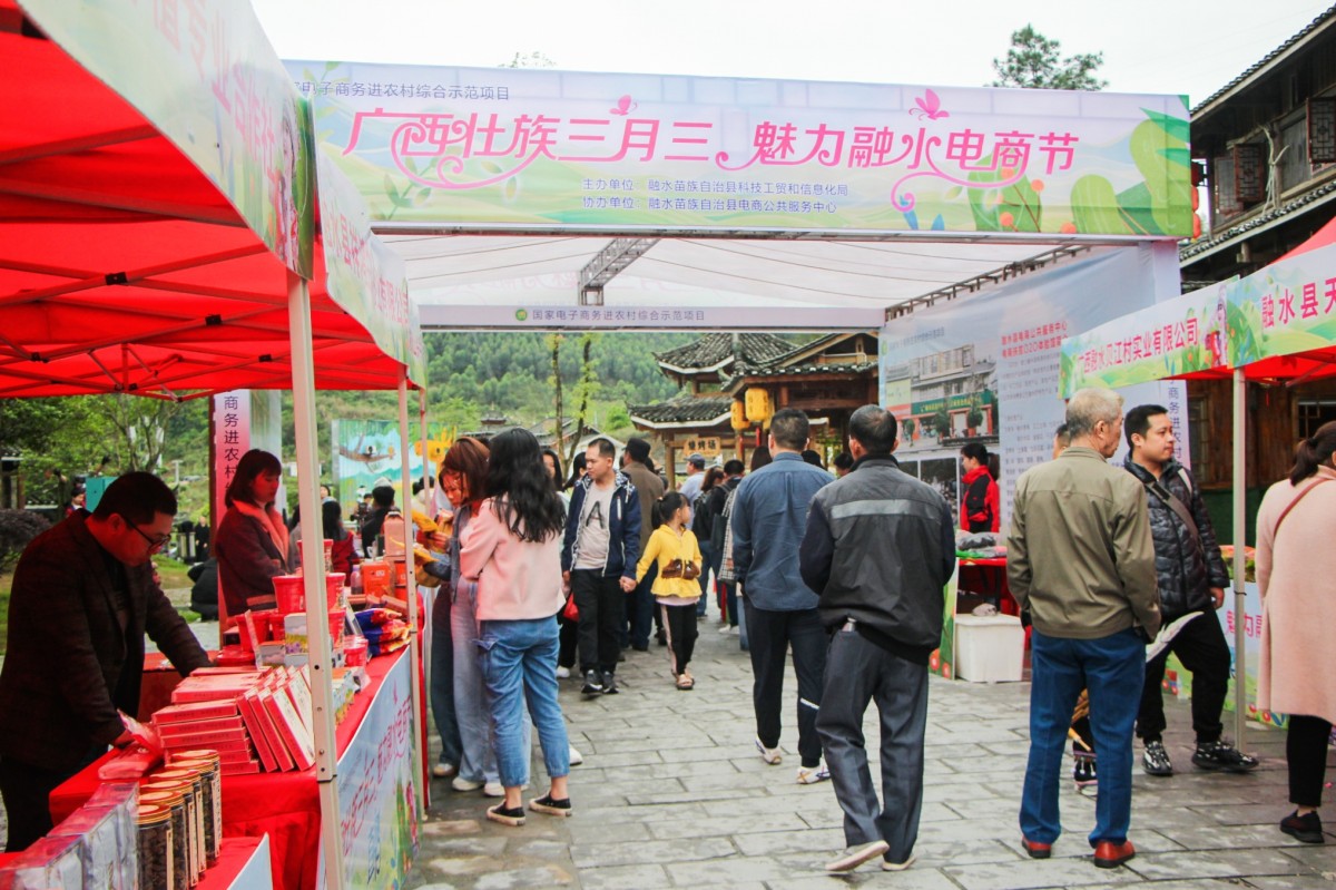 为弘扬广西传统民俗节日文化精神,打造融水特产线上线下融合销售的新模式,本次展销活动以线上促销为主导,充分利用互联网技术与传播优势,拓展本土电商企业的销售渠道。今年“壮族三月三”节日期间,开展了形式多样、内容丰富的展销活动。本次活动吸引了全国各地的游客前往参观。