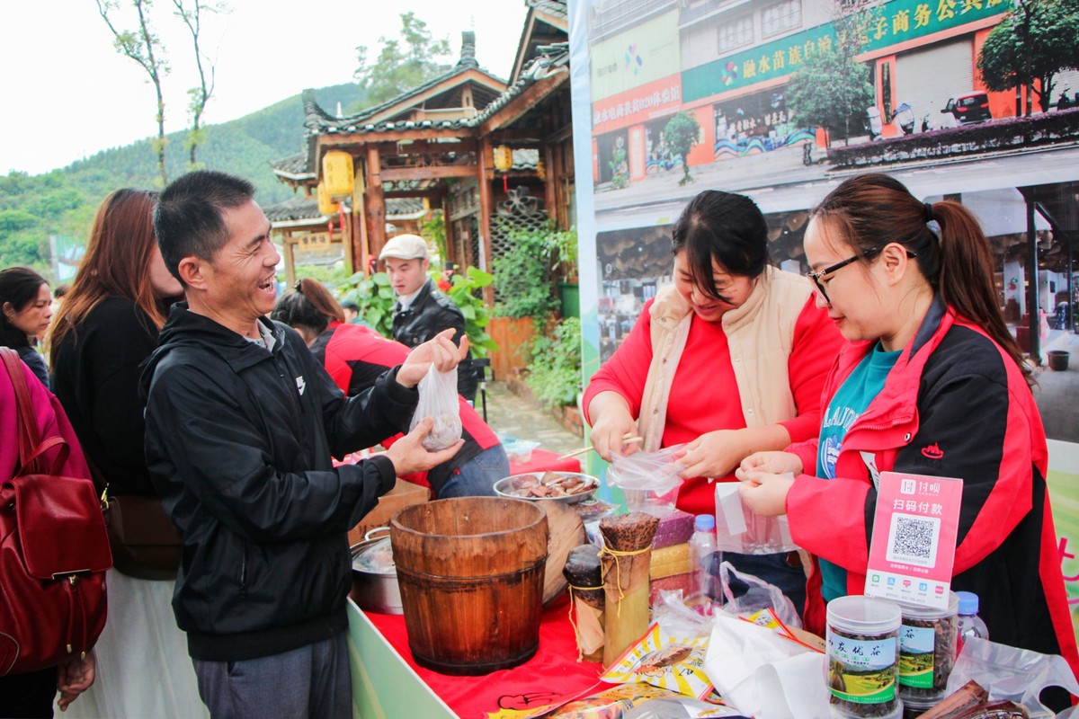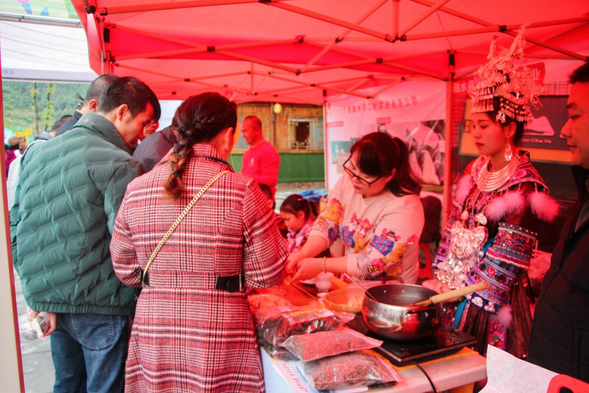 此次展销活动,由融水县科工贸局牵头,融水县电商公共服务中心协办,组织广西融水贝江村实业有限公司、融水塘口人家农业科技有限公司、广西融水山头牛食品有限公司、广西融水苗仁酱心食品有限公司、融水县滚贝乡玉宽酒坊等10家企业到双龙沟景区展销,活动现场十分火爆。
