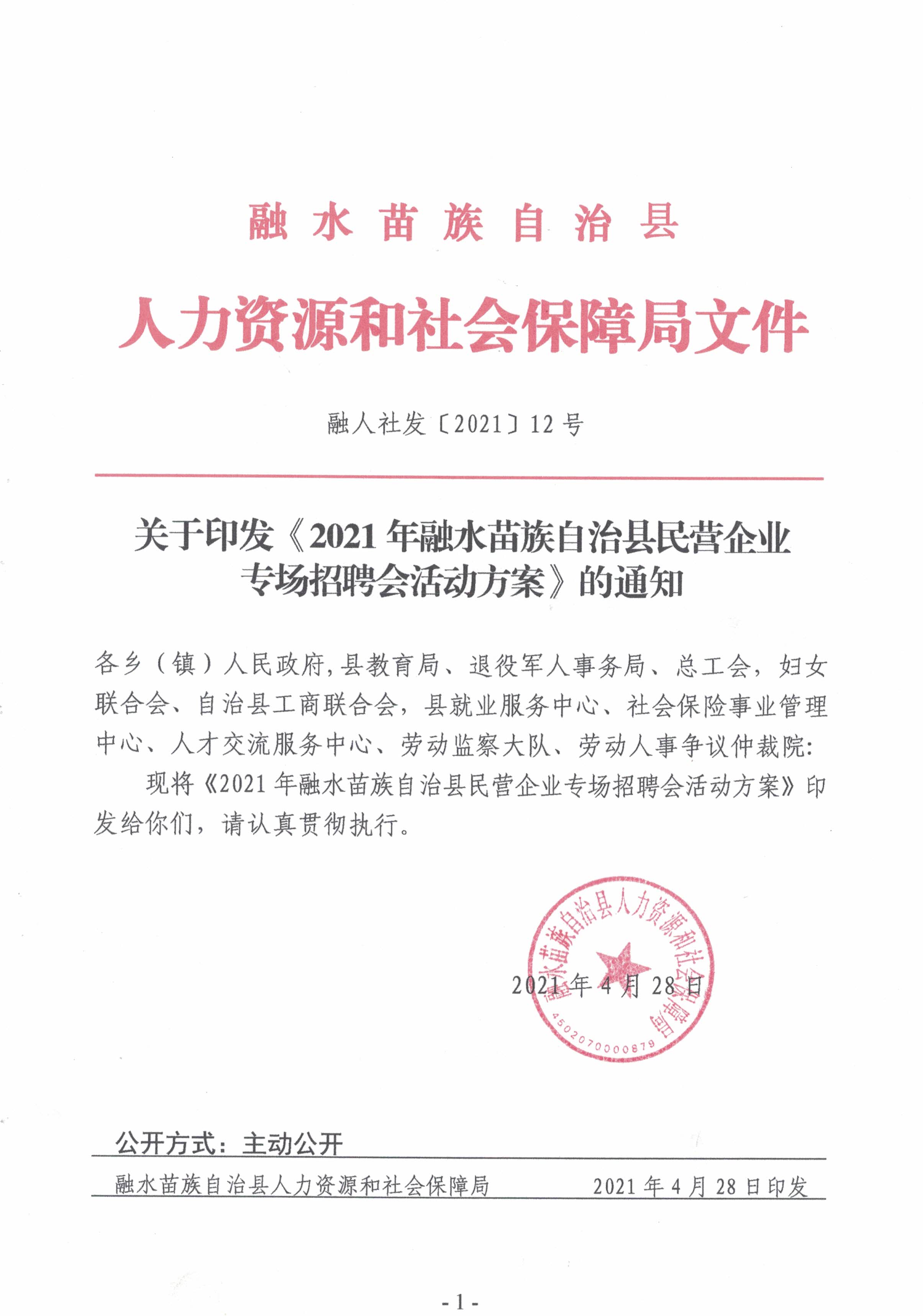 融水苗族自治县人力资源和社会保障局 2021年4月28日印发