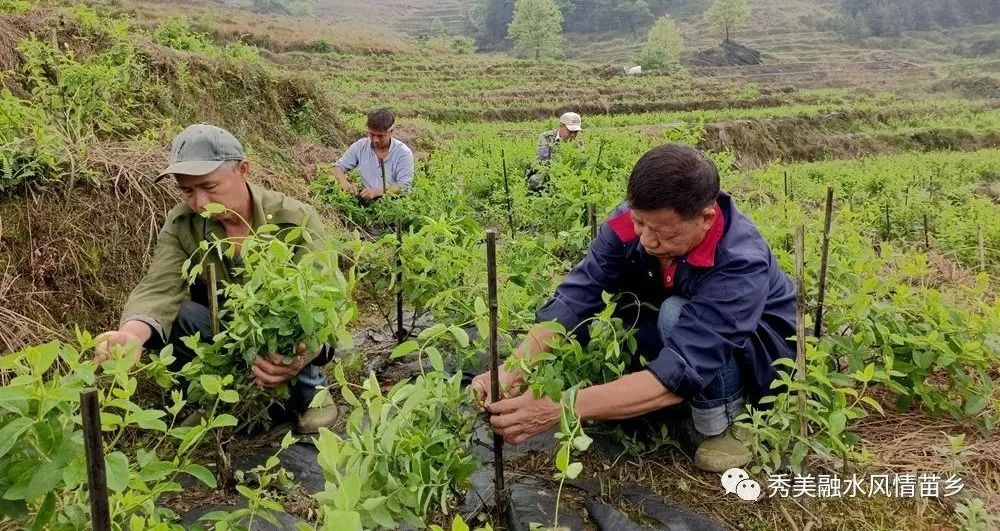 阳春三月,绿意逼人。3月30日,融水苗族自治县大浪镇大安村金银花示范基地,雨后的金银花,一垄垄长着绿油油的嫩芽,微风轻拂,令人心旷神怡。不远处,大安村金银花合作社的村民正忙着给金银花木苗断芽、除草,一派忙碌的景象。
