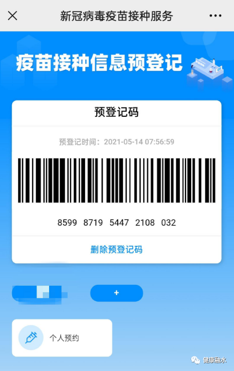 二、请大家扫码后,添加儿童信息,完善信息,点击“保存”,生成预登记码