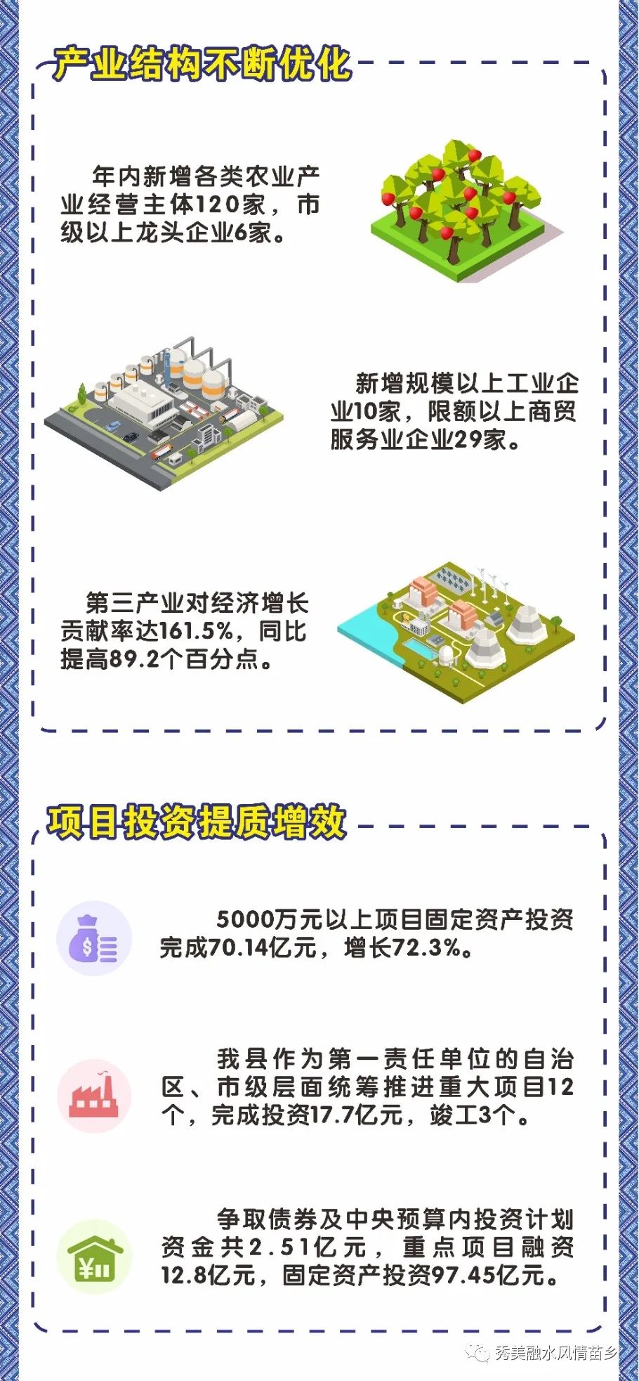 过去一年,我们聚焦产业提档升级,经济发展不断向好。农业产业提质增效,生态工业稳步发展,全域旅游日趋活跃。