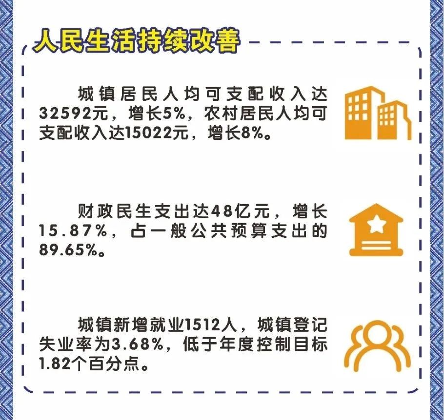 过去一年,我们全力以赴改善民生,人民生活更加美好。基本民生保障有力,教育事业优先发展,卫生健康水平持续提高,文化事业蓬勃向上,社会大局和谐稳定。