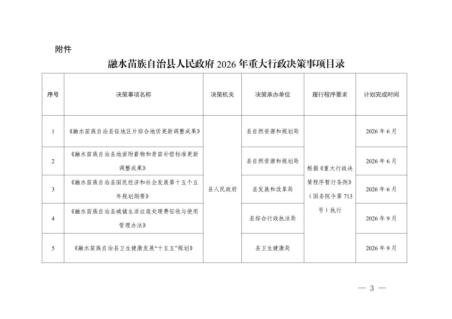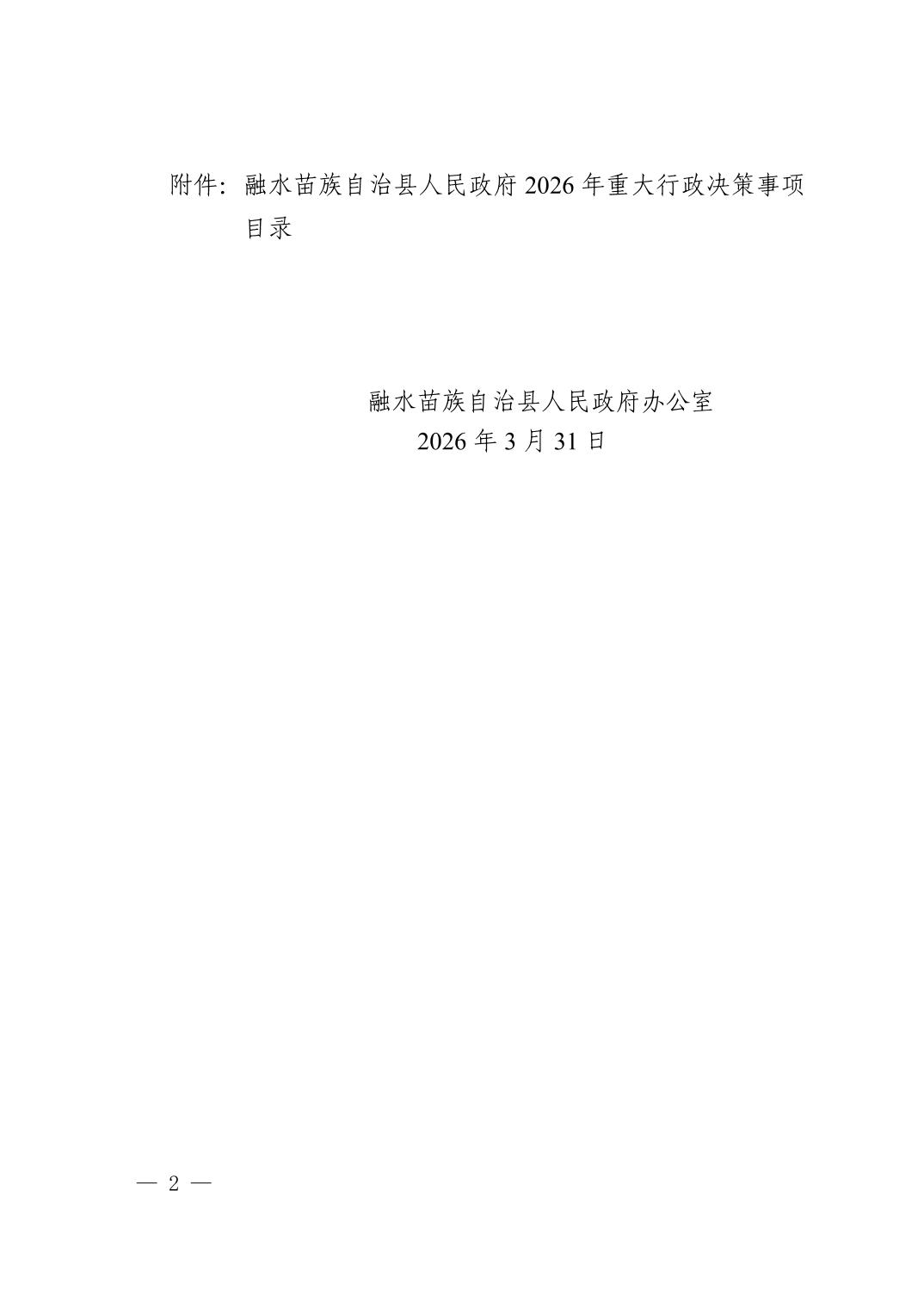 关于公布融水苗族自治县人民政府2026年重大行政决策事项目录的公告