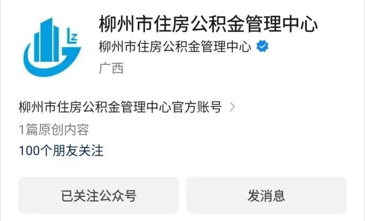 第一步:关注“柳州市住房公积金管理中心”微信公众号