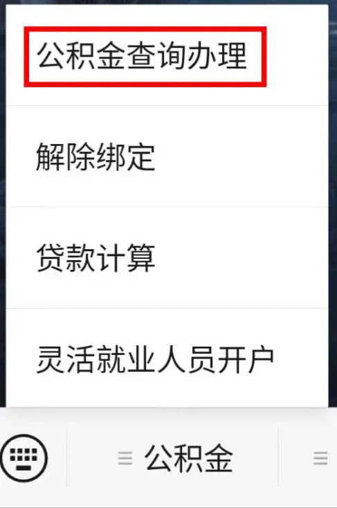 第二步:在左下角菜单依次选择“公积金”→“公积金查询办理”