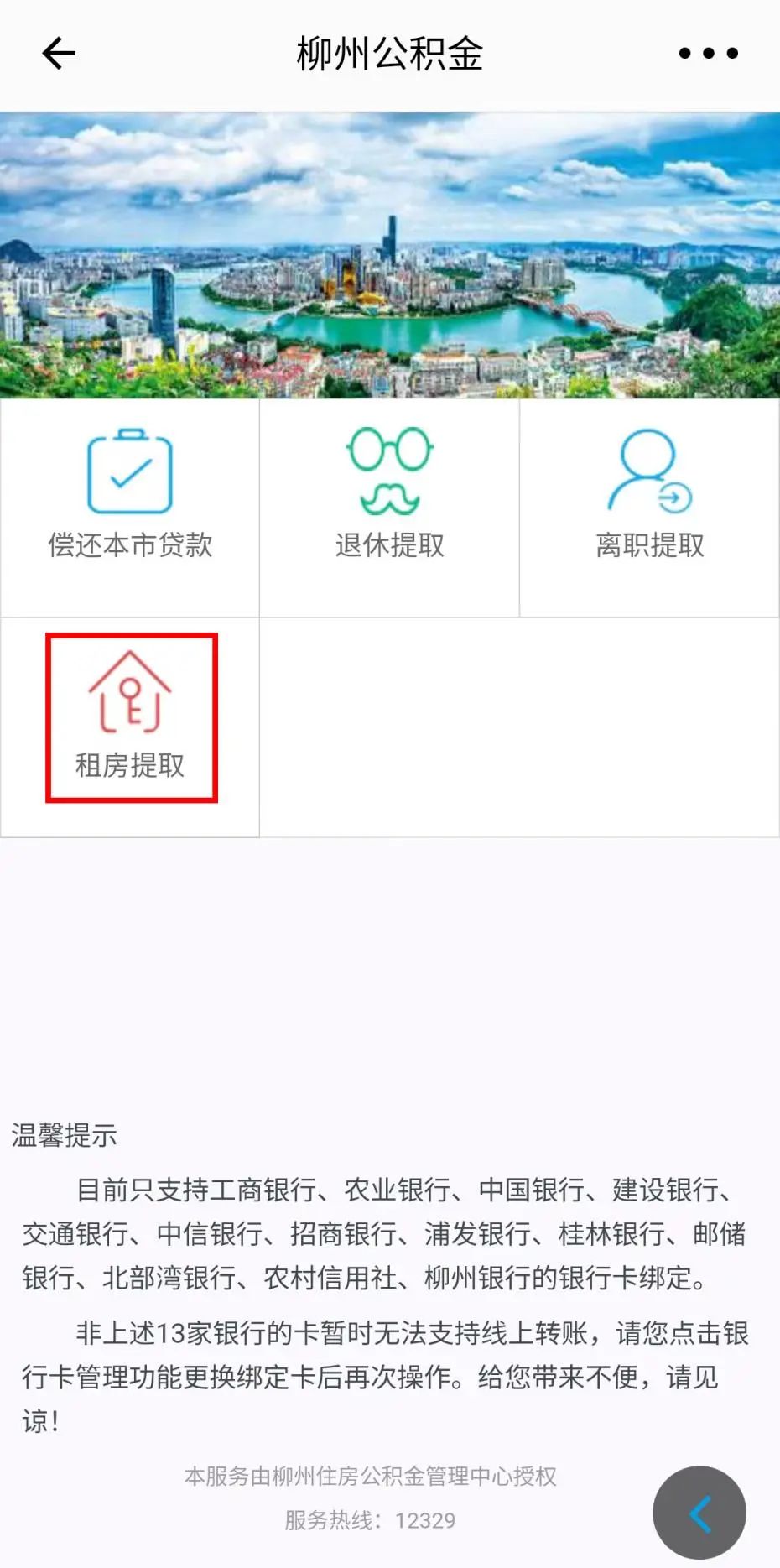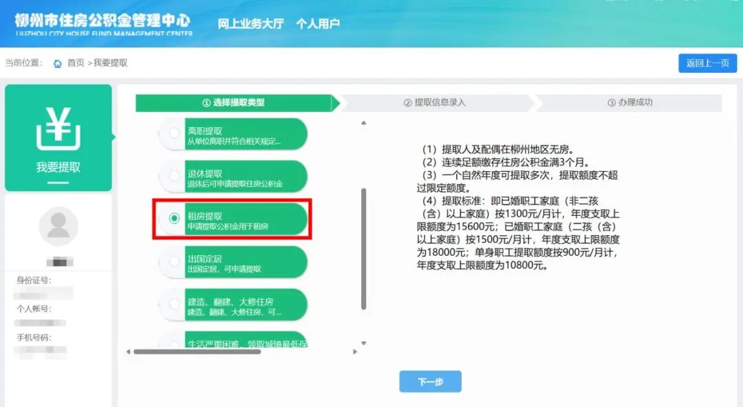 第四步:选择“租房提取”,点击下一步