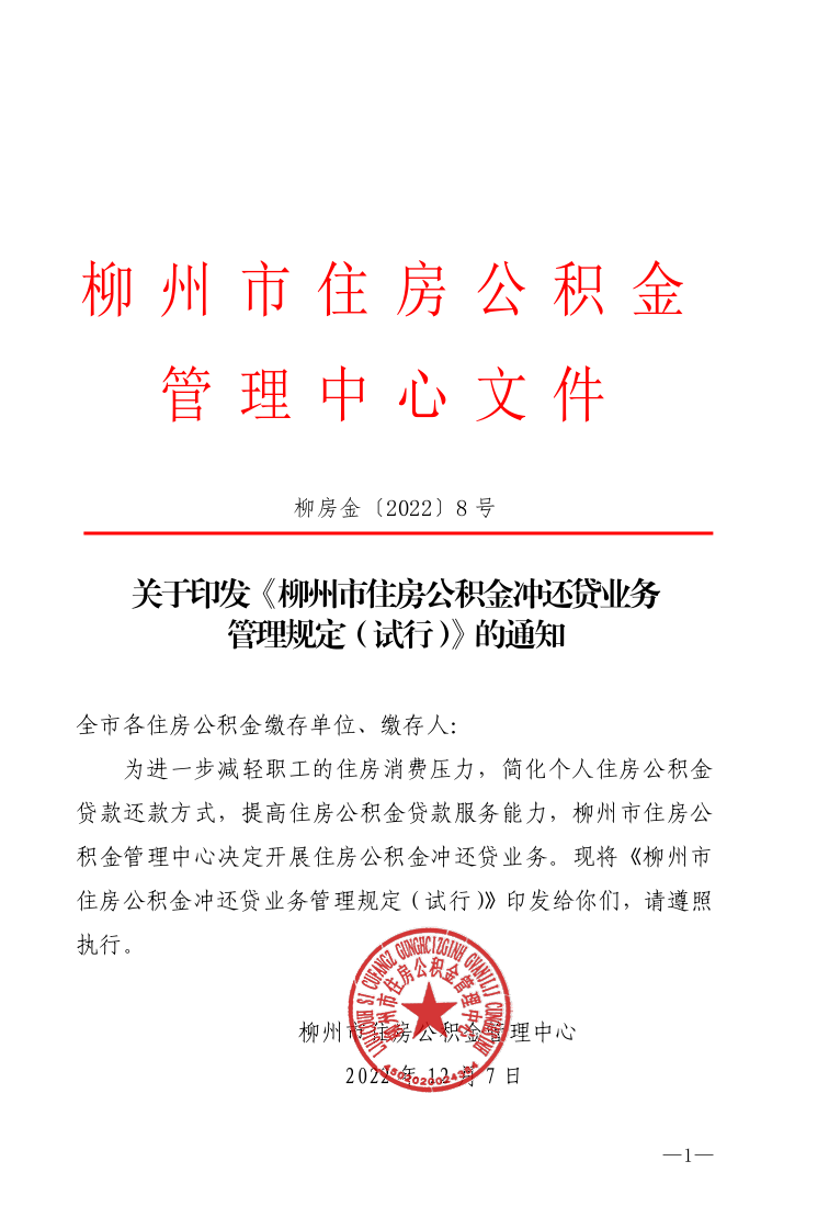 柳房金〔2022〕8号 关于印发《柳州市住房公积金冲还贷业务管理规定(试行)》的通知