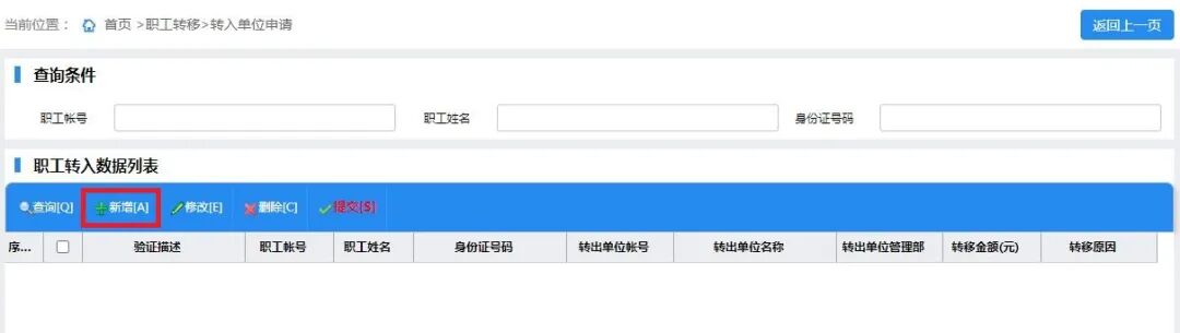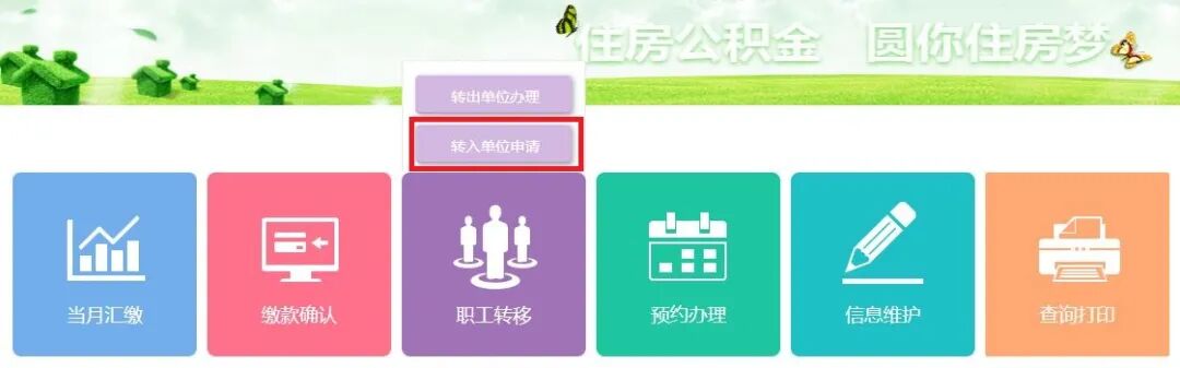 第一步:单位登录住房公积金网厅,选择“职工转移→转入单位申请”