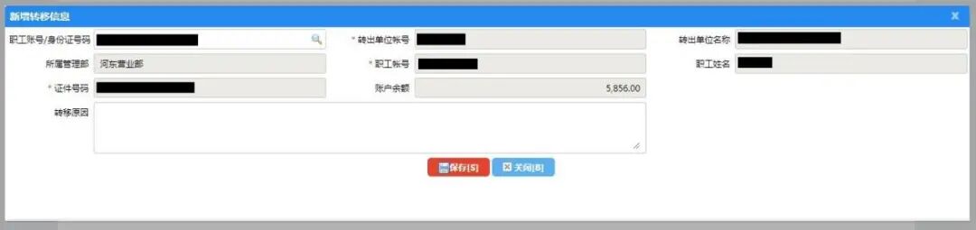 第三步:通过职工账号/身份证号码进行检索,确认职工账号信息无误后点击“保存”
