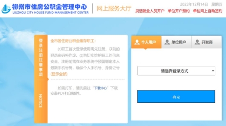 第一步:进入我中心官网首页 http://zfgjj.liuzhou.gov.cn/ ,点击“公共服务”下的“网上服务大厅”