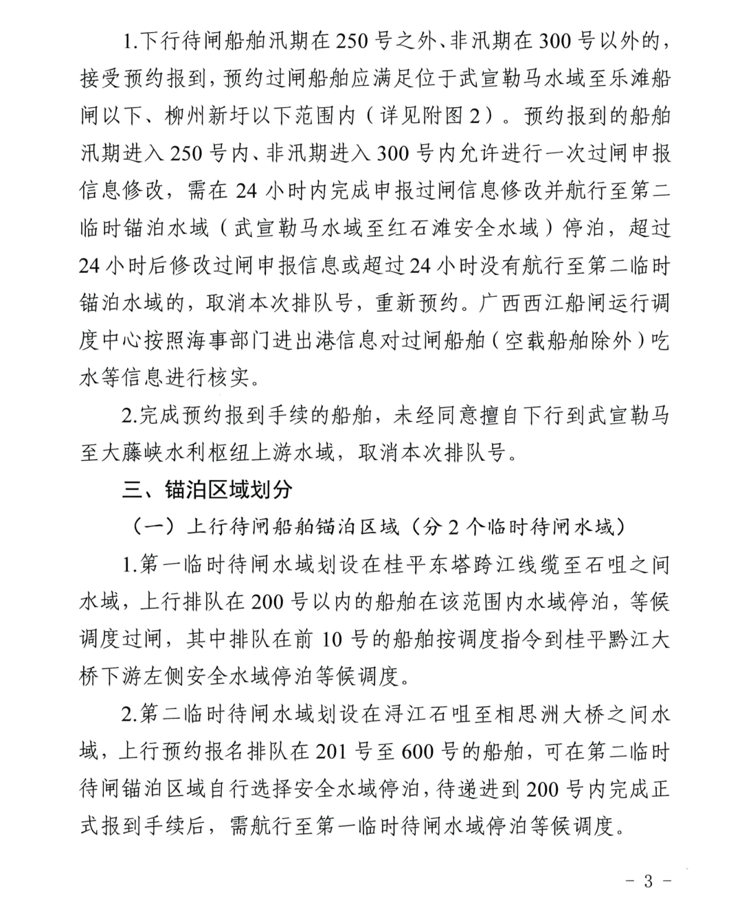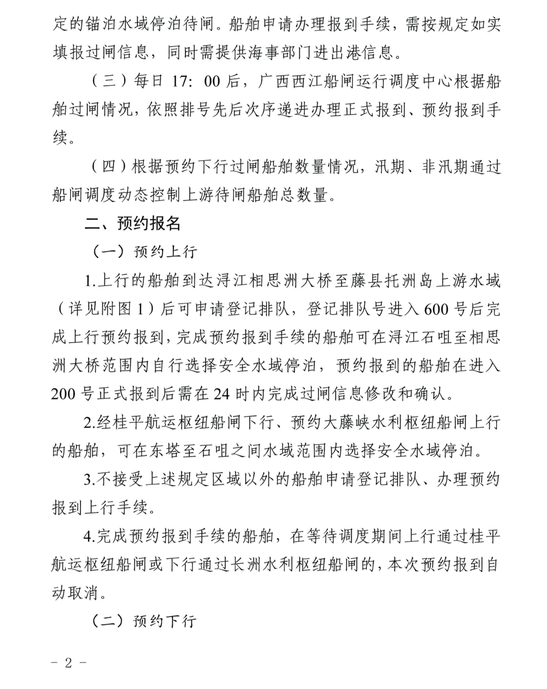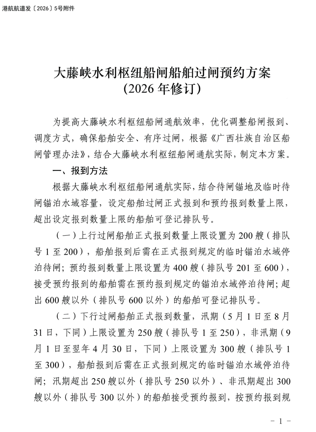 近期,自治区港航发展中心印发《大藤峡水利枢纽船闸船舶过闸预约报到方案(2026年修订)》,明确了上行过闸正式报到船舶数量上限调整至200艘,下行过闸正式报到船舶数量,汛期上限调整至250艘,非汛期上限调整至300艘,超出限额的船舶可参与预约报到,并可开展区间短途运输、维护休整、年检保养等作业。