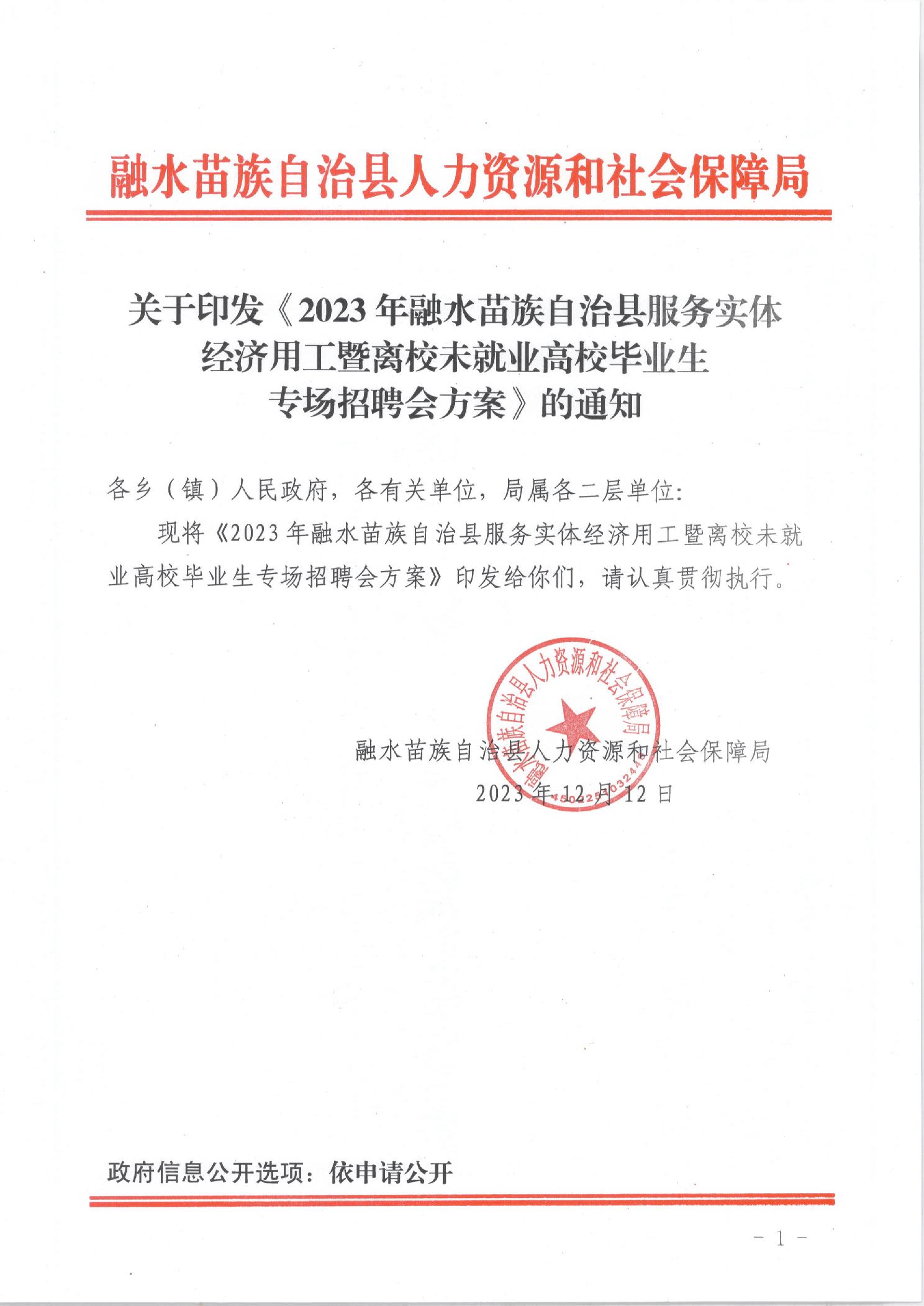 关于印发《2023年融水苗族自治县服务实体经济用工暨离校未就业高校毕业生专场招聘会方案》的通知