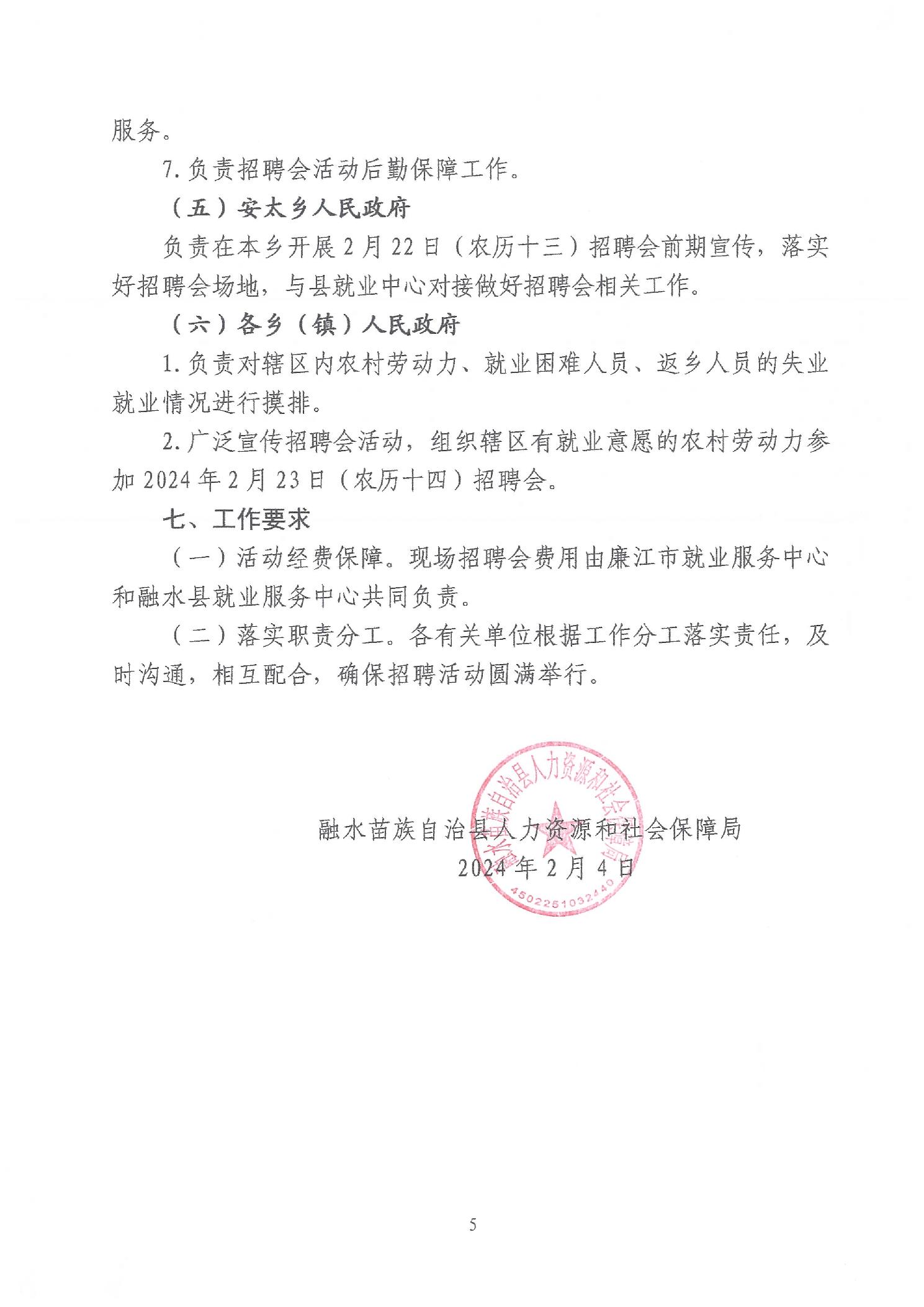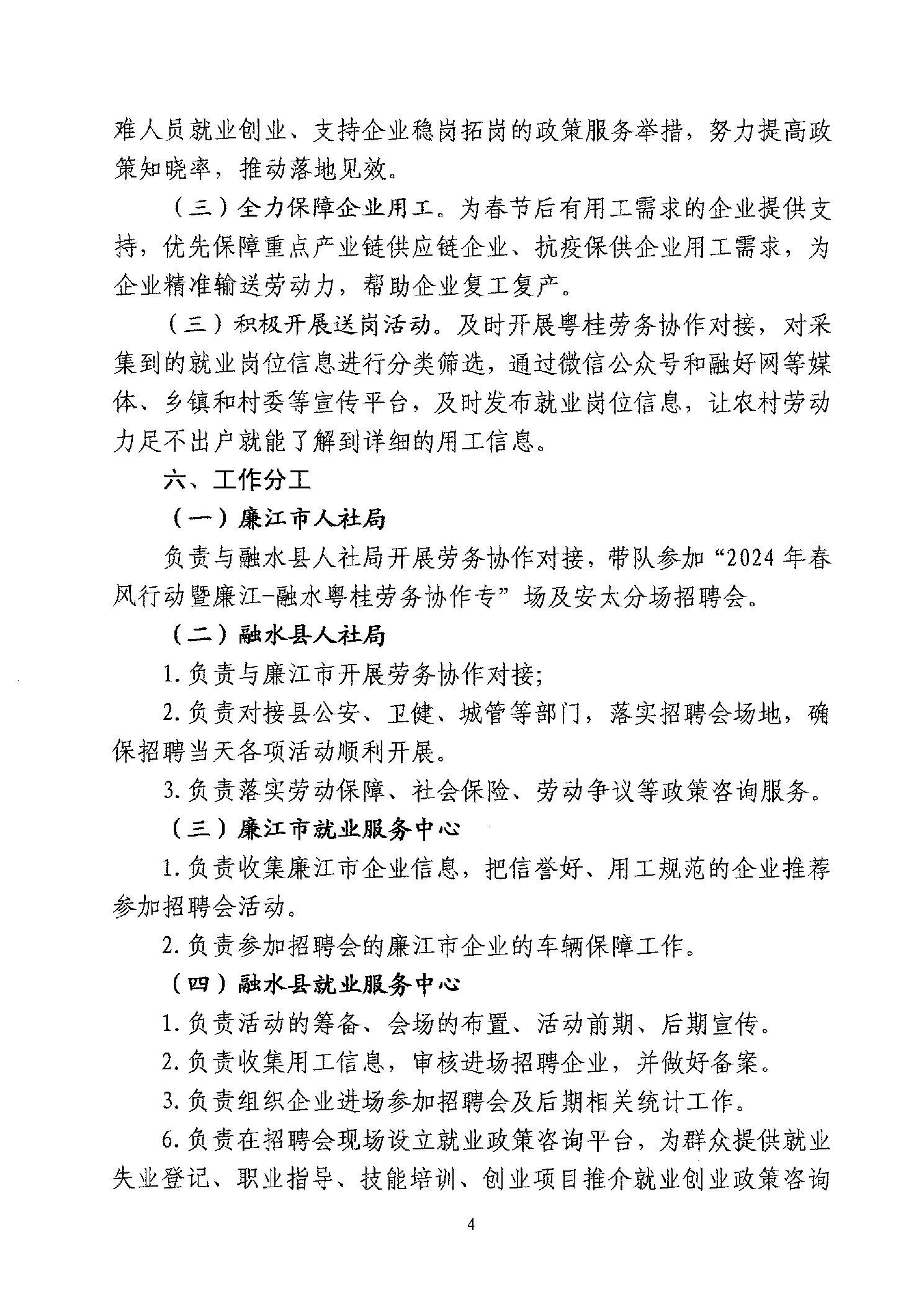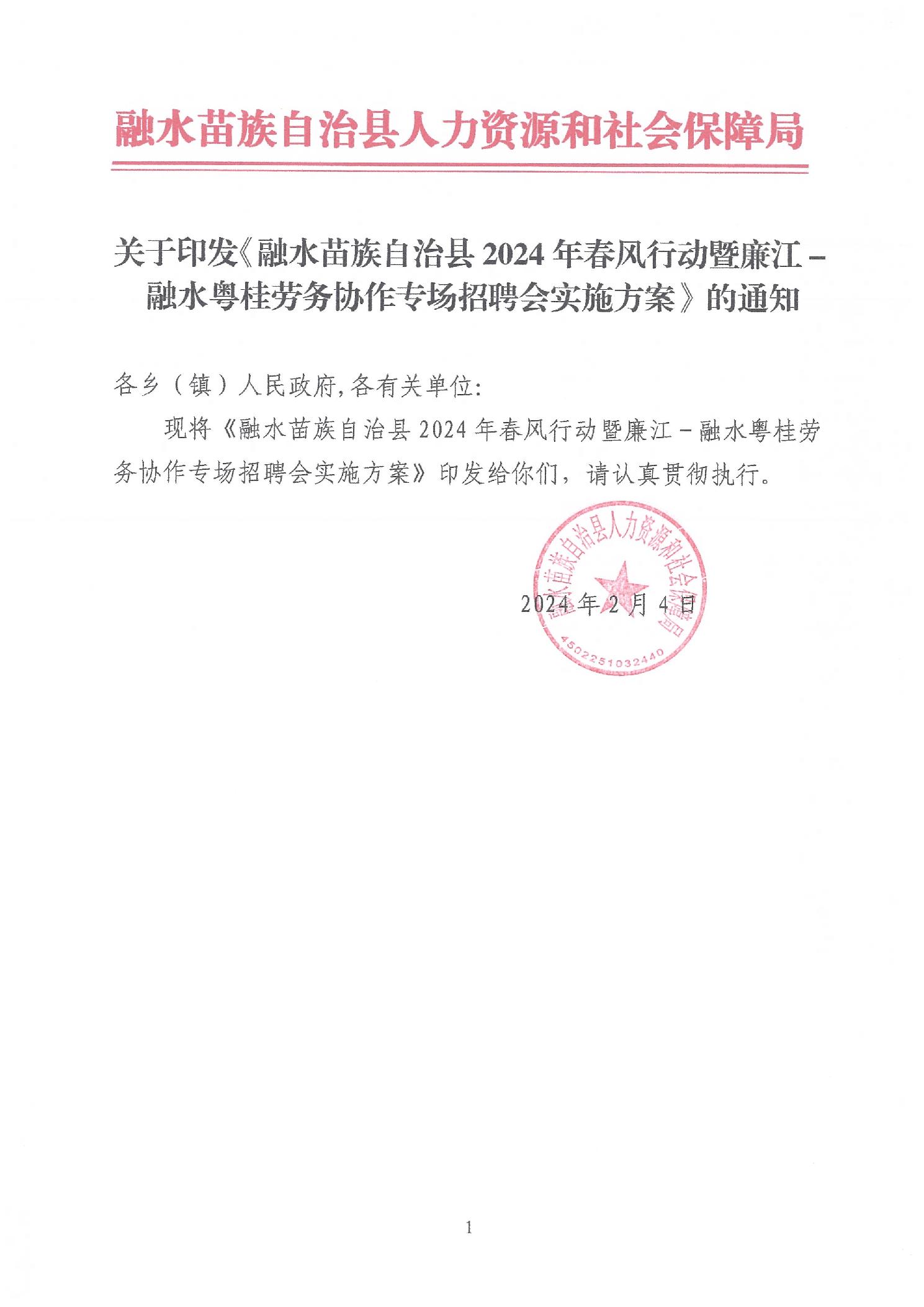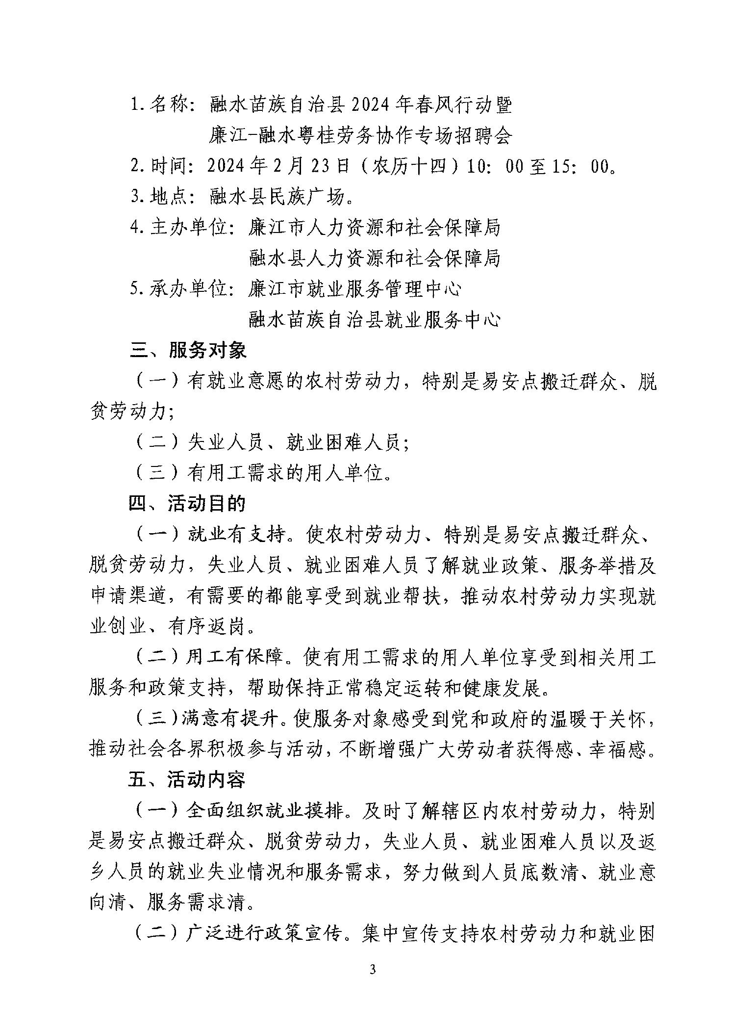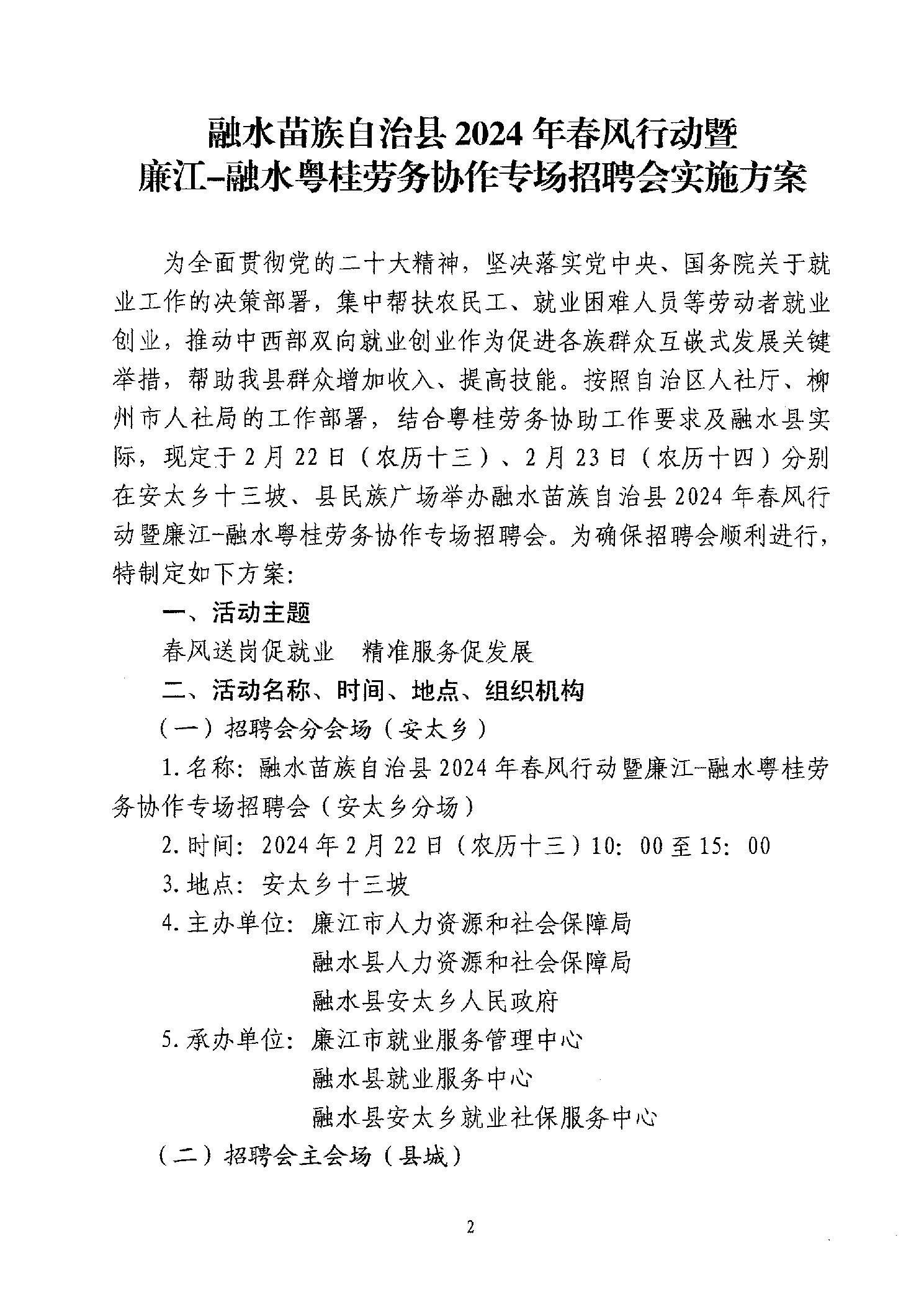 关于印发《融水苗族自治县2024年春风行动暨廉江-融水粤桂劳务协作专场招聘会实施方案》的通知