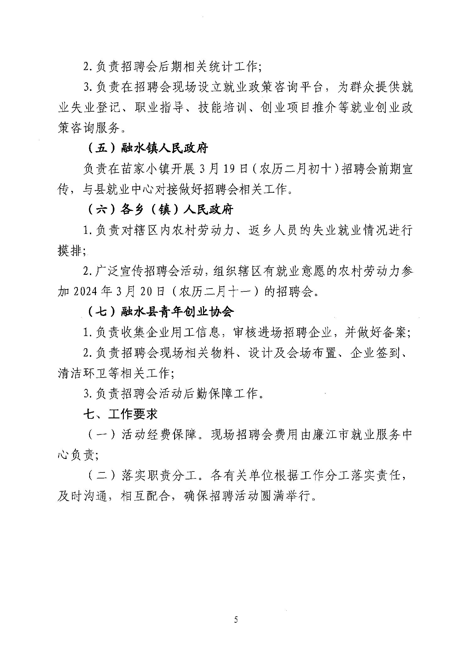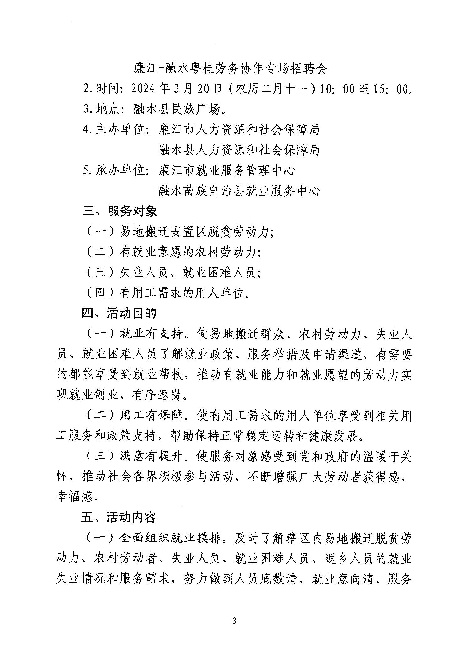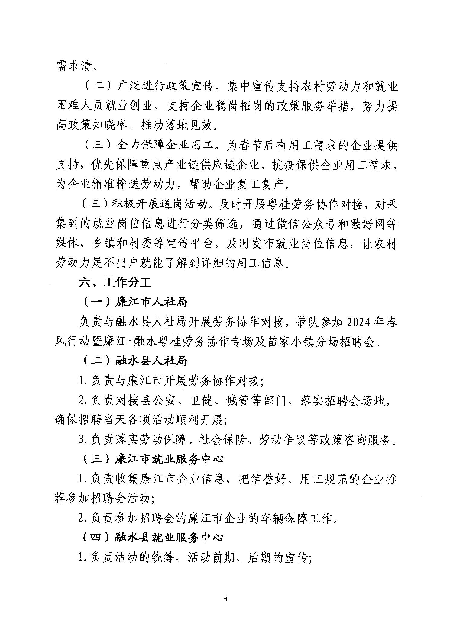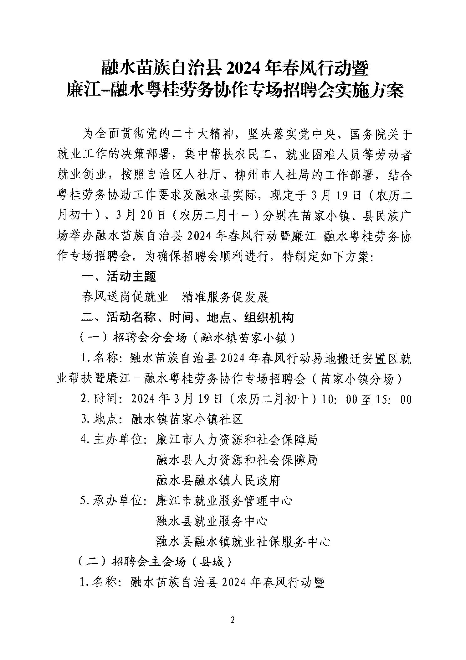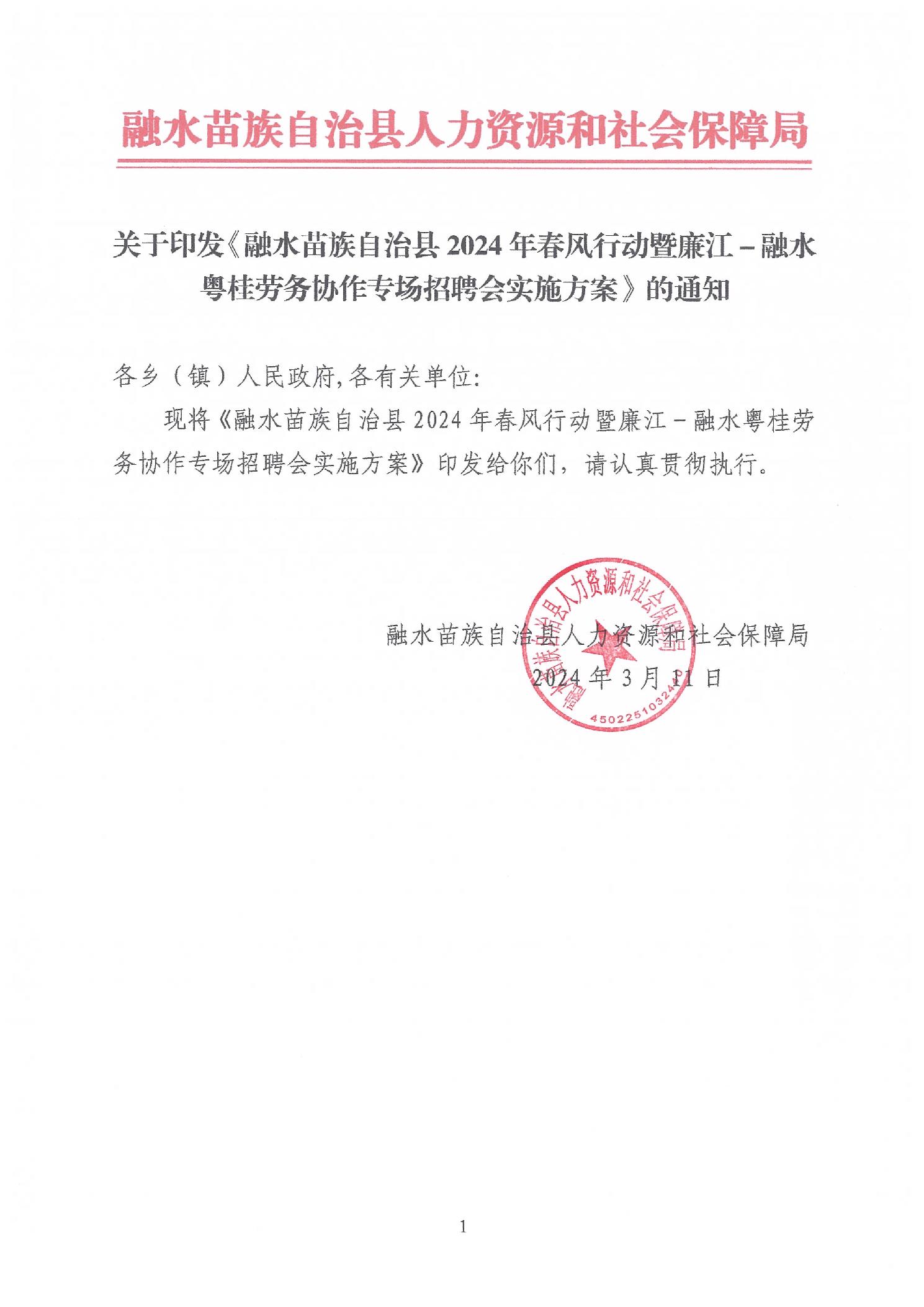关于印发《融水苗族自治县2024年春风行动暨廉江-融水粤桂劳务协作专场招聘会实施方案》的通知